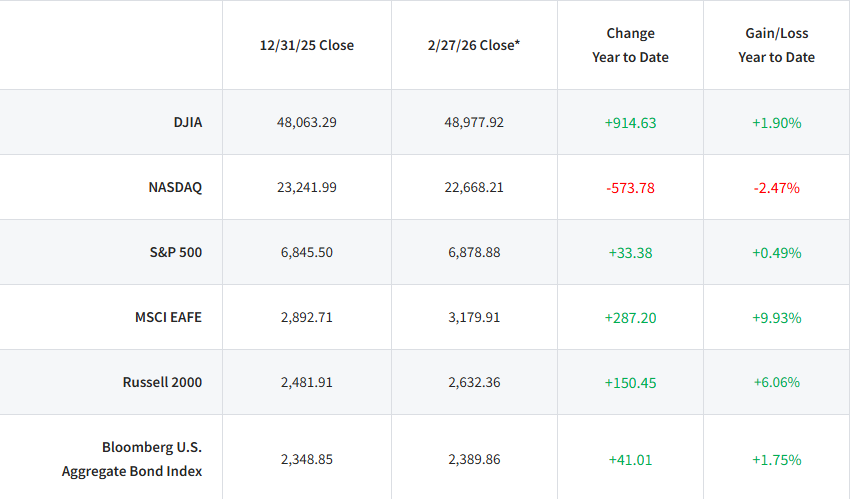 *Performance reflects index values as of market close on February 27, 2026.